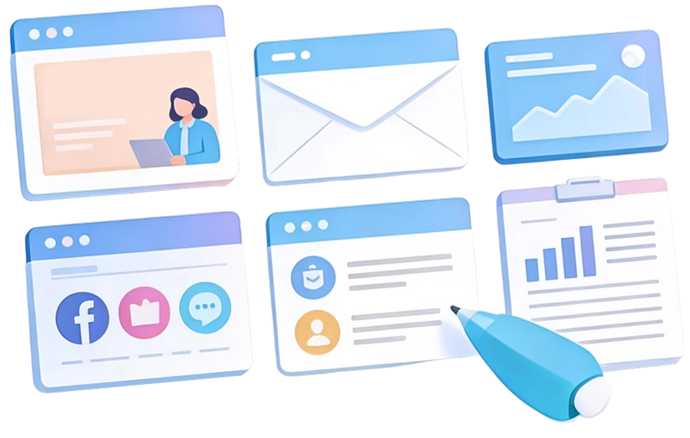 Ads, emails, posts, reports